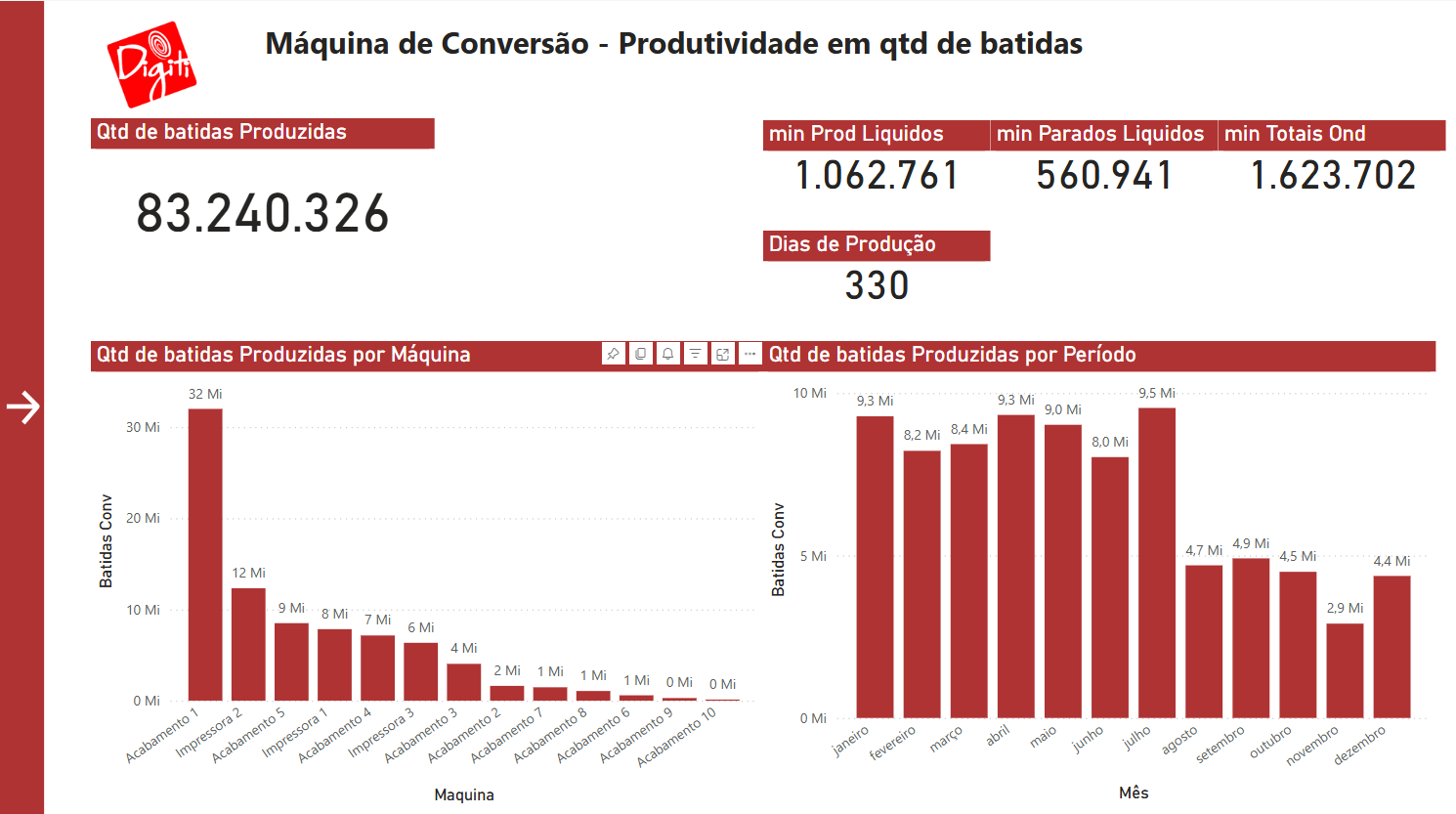 Acompanhe a conversão em batidas/h por máquina e período.